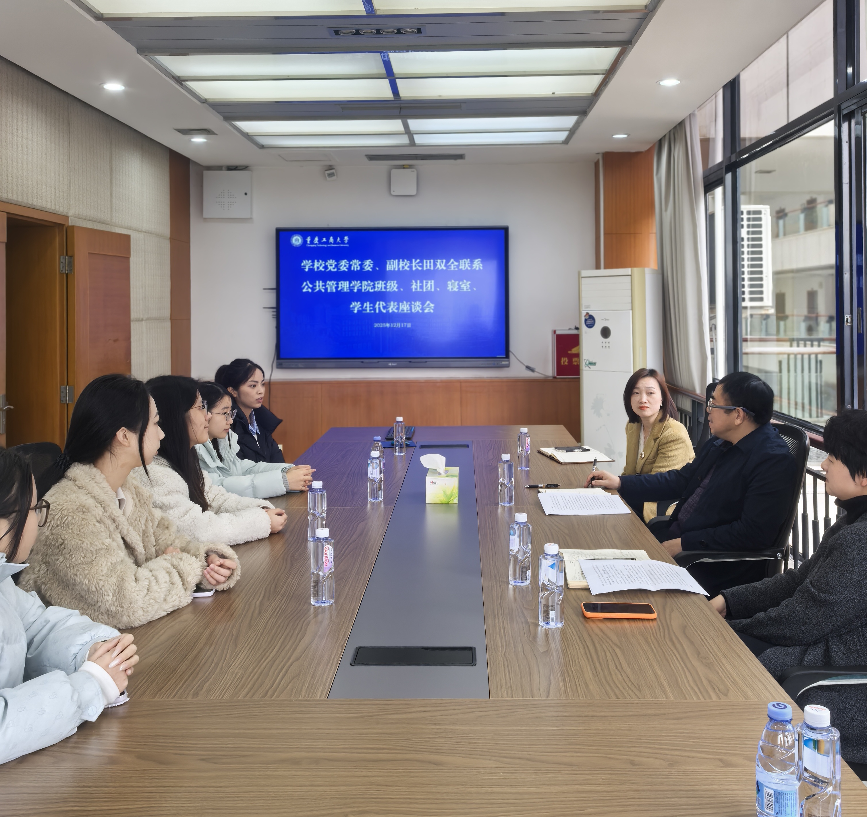 当前位置: 首页 >> 必赢国际 >> 正文 面对面倾听心声 实打实助力成长——副校长田双全与必赢242网址学生代表亲切座谈 时间:2025年12月18日 16:35 作者: 邓丽 12月17日下午,校党委常委、副校长田双全与其联系的必赢242网址班级、社团、寝室及学生代表在厚德楼4002会议室举行座谈会,深入了解学生学习生活状况,倾听青年心声,共话成长发展。学院党委书记陆嘉、副书记谢书楠、分团委书记邓丽参会。 座谈会上,学生代表们结合自身实际,分享了在思想引领、学业发展、班级建设、志愿服务、宿舍文化等方面的经历与感悟。23土管一班学生代表介绍了班级在团支部建设、学风建设、学科竞赛等方面的开展情况以及取得的突出成绩,展现了团结进取、多元融合的班级风貌;南十六A1-407寝室代表讲述了室友之间互帮互助、共同营造优良学习生活环境的生动故事;小红馨公共卫生志愿服务协会会长汇报了协会在急救技能培训、公益服务等方面的创新实践与扎实成效;少数民族学生代表也坦诚交流了自身在学习、生活中的收获与困惑,表达了积极向上的成长诉求。 田双全认真听取了每一位同学的发言,并不时互动交流,对同学们展现出的昂扬精神面貌、扎实学业基础、丰富实践成果和社会担当意识给予了充分肯定。他结合学校发展定位和人才培养目标,对同学们提出殷切期望:一是要勤学善思,锤炼过硬本领,在专业学习和创新实践中不断突破;二是要注重全面发展,积极参与文体活动与社会实践,提升综合素质;三要强化集体意识,营造团结友爱、互助共进的班级与寝室氛围,共同成长进步。他表示,学校始终坚持以生为本,将持续关注学生需求,优化育人环境,为同学们的成长成才提供坚实支持。他表示,非常乐意在同学们在学习、工作和生活中遇到困难的时候为他们排忧解难,希望和同学们保持联系。 上一条:【主题教育】学院党委副书记谢书楠一行赴北京工商大学调研学习 下一条:研途领航明方向 答疑解惑助成长—2023 级人文地理与城乡规划专业考研指导交流会成功举办 【关闭】