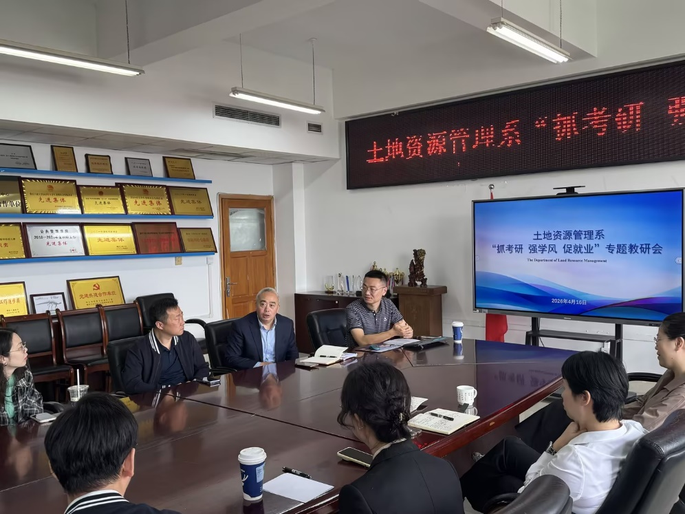 当前位置: 首页 >> 学院新闻 >> 正文 土地资源管理系专题教研会聚焦考研引领与学风建设 时间:2026年04月17日 10:47 作者: 杜挺 4月16日上午,土地资源管理系在学院1004会议室召开“抓考研,促学风”专题教研会。学校发展规划处处长骆东奇应邀与会,同系全体教师共商“升研工作与学风建设一体化推进”之策。会议现场研讨深入,气氛热烈。 学院党委书记陆嘉首先回顾了系部学风建设与考研工作的奋进历程。她指出,自去年将土管系作为升研工作“试验田”以来,全系教师凝心聚力,推动学生升研率从2025年的22.97%显著提升至2026年的40.54%,其中超过三分之二学子进入“双一流”高校深造,成绩令人振奋。陆嘉强调,考研既是学生成长成才的关键路径,也是优化学风、提升人才培养质量的重要引擎。面对新阶段的挑战与机遇,她希望土地资源管理系能进一步总结经验,打造可复制可推广的“样板”,持续强化学风引领作用。 骆东奇处长从育人全局出发,系统阐述了考研与学风建设相辅相成的内在联系。他认为,浓厚的考研氛围能有效激发学生的目标感与自律性,带动课堂学习、自主研修、科研实践的整体风气;反过来,扎实的学风又是考研成功的根基,为学生奠定坚实的知识基础与严谨的治学习惯。 在交流环节,教师们踊跃建言。臧亚君老师建议将考研规划前移至新生入学教育,帮助学生早立志、早规划;代富强老师提出组织成功“上岸”学子开展经验分享,以榜样力量激发“比学赶超”的积极氛围;陈帅老师则关注学生报考时的迷茫,主张提供更具个性化、精细化的院校专业指导,为学子圆梦助力。 系主任杜挺在总结中感谢全系教师的辛勤付出,并将考研助推与学风养成工作系统归纳为“四步计划”:大一实施“启蒙计划”,绘就学业发展远景;大二推进“强基计划”,夯实专业基础与创新能力;大三启动“备考计划”,优化课程设置,拓宽学术视野;大四开展“护航计划”,提供“一生一策”的全程精准指导,为学生晋级深造保驾护航。 此次教研会进一步统一了思想,明确了方向,细化了举措。土管系将以此次研讨为新的起点,持续深化国家级一流本科专业建设,优化育人生态,推动人才培养质量再上新台阶。 下一条:学院召开2026届毕业生就业工作第四次推进会 【关闭】
