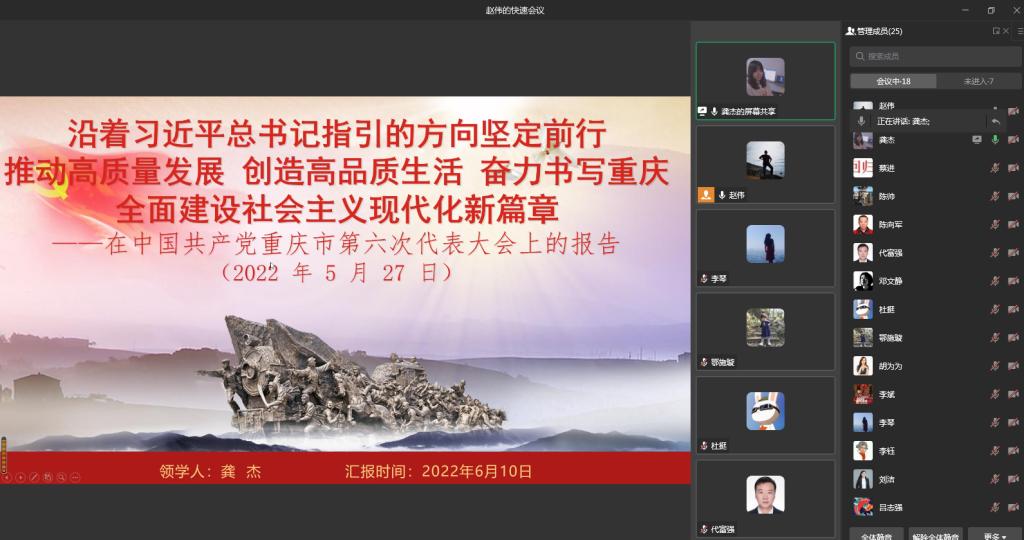 当前位置: 首页 >> 党建双创 >> 正文 必赢242网址党委所属各支部开展学习中国共产党重庆市第六次代表大会精神主题党日活动 时间:2022年06月13日 16:14 作者: 根据校党委组织部统一学习工作部署,学院党委所属各支部分别以不同形式全面开展学习中国共产党重庆市第六次代表大会精神主题党日活动 。各支部的学习活动分别由所在支部的支部书记主持。 6月9日,教工第一党支部开展线上学习活动,由周重阳同志领学;学生第二党支部开展线上学习活动,由胡渝林、晋莉华两位同志领学; 6月10日,教工第二党支部开展线上学习活动,由龚杰同志领学;学生第一党支部在启智楼81004会议定开展学习活动,由王巧洪同志领学。各支部深入学习了陈敏尔同志在会上作的题为《沿着习近平总书记指引的方向坚定前行 推动高质量发展 创造高品质生活 奋力书写重庆全面建设社会主义现代化新篇章》的报告。 领学后,与会同志针对报告内容谈心得说体会,开展了深入交流讨论活动。学生党员熊玲同志说:“我们要深化理论武装,持续学懂弄通做实习近平新时代中国特色社会主义思想”;彭加佳同志说:“我们要弘扬优良作风,始终保持党同人民群众的血肉联系,作为学生党员我们也要做到密切联系群众,加强与群众的联系沟通”; 教工第二党支部书记赵伟说:“过去5年,重庆市各项事业取得了长足的进步与发展,我们支部建设也迈上了一个新的台阶,国家“样板支部”创建验收顺利通过,这即是对我们支部工作的肯定也是对我们工作的鞭策,我们要深刻学习领会会议精神,结合我们工作实际,结合专业学科特点,主动作为、有所作为,推进支部建设,促进学院发展,积极服务社会,以实际行动迎接党的二十大胜利召开”。 上一条:【党课开讲啦】必赢242网址教工第二党支部书记赵伟为学生党员及入党积极分子讲党课 下一条:必赢242网址学生第一党支部召开党员大会及组织生活学习会 【关闭】