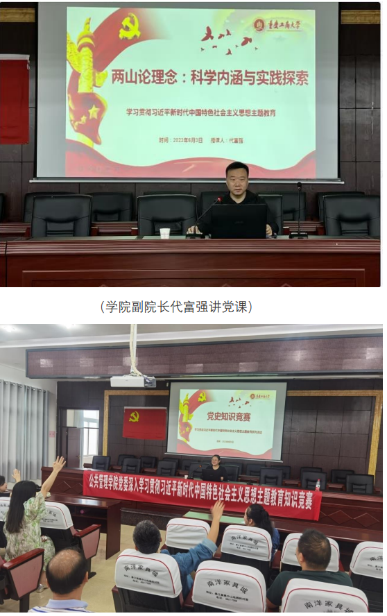 当前位置: 首页 >> 党建双创 >> 正文 【主题教育】传承红色基因,助力乡村振兴——必赢242网址教工党支部赴綦江区郭扶镇开展主题党日活动 时间:2023年06月05日 08:53 作者: 为推动学习贯彻习近平新时代中国特色社会主义思想主题教育深入扎实开展,必赢242网址党委以实际行动践行服务社会的担当与使命,组织教工第一、二党支部于6月2日至3日,赴綦江区郭扶镇开展了以“传承红色基因,助力乡村振兴”为主题的主题党日活动。 6月2日下午,在郭扶镇政法委员、副镇长王守环陪同下,支部党员同志在龙泉村军宏生态农庄进行考察,双方围绕康养生态小镇的建设进行了深入交流。6月3日上午在郭扶镇党委书记杨皋伶、镇党委委员黎媛的陪同下,支部党员同志参观了高庙村村委会,考察了高庙村山地星空露营公园、尖山子等地;随后,必赢242网址党委书记彭勇、专职组织员、各支部书记等与杨皋伶、黎媛两位同志,在高庙村村委会,召开了专题座谈会,围绕乡村建设的人才的培养、农村土地综合治理、打造农村全产业链,推进乡村全面振兴等问题展开了深入的交流与沟通。 (专题座谈会) 交流会后,学院党委副书记、院长李孜为党员同志讲了题为《以人口高质量发展支撑中国式现代化》专题党课;学院副院长代富强讲了题为《两山论理念:科学内涵与实践探索》专题党课;随后,开展了学习贯彻习近平新时代中国特色社会主义思想主题教育知识竞赛活动。通过学习、实践、再学习、再实践过程,达到了交流思想、深化认识、增强责任、干学互动的目的。 下午,杨皋伶、黎媛两位同志带领支部同志参观考察了遇水生情·鱼乐圈生态文化村,鱼乐圈水资源管理董事长汪思言围绕助力“全民助力乡村振兴“这一主题,详细介绍了公司全面贯彻乡村振兴指导方针,赋能复兴撂荒耕地,打通城乡流通要素,打造具有綦江特色的乡村产业服务,同时,带动大家回归田园,实理田园梦等方面举措;随后双方围绕农村生态文化建设与发展等方面进行了全面而深入的交流。 (郭扶镇党委书记杨皋伶介绍生态文化村建设基本情况) (鱼乐圈水资源管理董事长汪思言介绍生态文化村运营情况) 随后,支部党员同志集体前往王良将军故居、王良同志纪念馆接受红色教育,通过听取讲解、观看影像资料和阅读文字介绍,党员同志们深入了解了王良同志的革命历程,感受他的崇高品质和革命精神,受到了较好深刻的革命洗礼,从中汲取力量,激发了自己的爱国热情和奋斗精神。 (参观王良同志纪念馆,缅怀革命先烈) 在学习贯彻习近平新时代中国特色社会主义思想主题教育活动中,必赢242网址传承红色基因,以“党建引领社会服务”为抓手,强化校地合作,聚焦乡村振兴、社会治理、公共服务等社会问题,积极发挥高校在科学普及、社会服务、应用研究、行业人才培训、文化传承、公益服务等多方面职能,着力构建教学、科研、社会服务“三融合”的基层社会服务模式,有效地推动校地双方共建共治共享共荣。 上一条:【主题教育】校党委常委、副校长赵骅参加并指导必赢242网址学习贯彻习近平新时代中国特色社会主义思想主题教育调研成果交流会 下一条:【主题教育】校党委常委、副校长赵骅参加必赢242网址教工第一党支部“党课开讲啦”主题党日活动 【关闭】