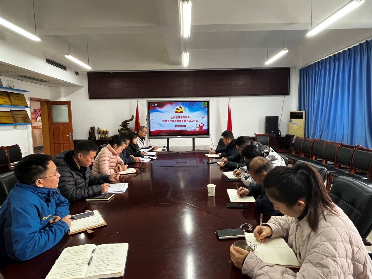 当前位置: 首页 >> 党建双创 >> 正文 必赢242网址党委召开2023年12月党建工作推进会暨支部书记工作例会 时间:2023年12月28日 10:46 作者: CC 2023年12月26日上午,必赢242网址党委在学院81004会议室召开了党建工作推进会暨支部书记工作例会,学院党委委员、各支部书记等参加了本次会议。会议由学院党委书记彭勇主持。 会上,彭勇对近期学院党建工作进行了统一部署。一是针对12月学院党委理论学习中心组及各支部政治理论学习,各层面要认真落实校党委组织部月度学习要求,将学习活动组织好,做好年度学习总结,思考下一步党员教育的目标举措。二是各支部要对本支部的党建工作、业务工作等进行全面梳理和总结,建立健全相关台账和档案资料,确保各项工作的规范有序开展。三是准备好支部书记述职评议工作,各支部书记要围绕本年履职情况、存在突出问题、下一步工作打算等方面进行汇报,同时接受学院党委的评议和考核,以促进各支部之间的交流和学习,推动支部工作的不断提升。四是作好支部换届工作准备,各支部要按照程序要求,积极做好换届选举的准备工作,包括制定选举方案、候选人推荐等环节;同时,要做好宣传教育工作,引导广大党员积极参与和支持换届工作。五是在假期期间,各支部可以结合实际情况和工作需要,组织开展丰富多彩的主题党日活动,做到假期支部活动不断线,增强党组织的凝聚力和向心力。 随后,与会同志对学院本年党建工作开展情况进行总结及下一年工作的方向、举措等进行了交流讨论。 上一条:必赢242网址召开党委理论学习中心组(扩大)学习会 下一条:校党委常委、副校长赵骅到必赢242网址主持召开全面从严治党工作会并开展党风廉政集体约谈 【关闭】