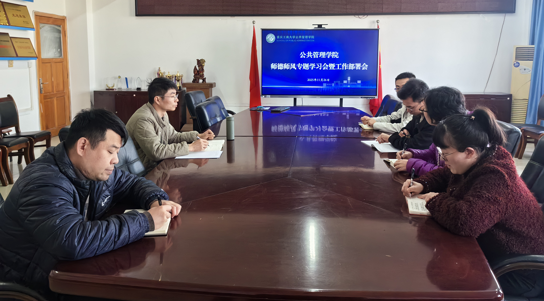 当前位置: 首页 >> 教学动态 >> 正文 立德树人守初心 铸魂育人担使命 必赢242网址各系部召开师德师风专题教育学习会 时间:2025年12月03日 16:15 作者: 王长征 为落实新时代教师队伍建设要求,引导全院教职工坚定理想信念、涵养高尚师德、提升育人能力,必赢242网址于近日召开师德师风专题教育学习会。 11月26日,学院教学副院长、各系部主任以及教务办工作人员召开师德师风专题学习会暨工作布置会。会议开始,王长征副院长领学了《新时代高校教师职业行为十项准则》和《242nte官网教职工职业行为负面清单(试行)》等重要文件,强调了教师职业道德的底线要求和红线意识。随后,对学院师德师风专题教育学习工作进行布置,要求各系部高度重视对系部教师师德师风的要求,这既是对教师的警示提醒和严管厚爱,也是深化学院教学育人的关键之举。 11月27日,我院公共管理系、劳动与社会保障系、城乡规划系、土地资源管理系四个系部分别召开师德师风专题教育学习会。各系部主任分别领学相关政策文件要求,理解政策文件的核心要义和行为规范,并且结合系部自身专业特征和实际情况,进行反思和讨论,严格自觉对照准则要求,规范从教行为,提升师德素养。 师德师风建设永远在路上。学院及系部召开专题学习会,使得全体教师进一步统一了思想,提高了认识,明确了方向。在未来,学院将以此次学习为新的起点,内化于心、外化于行,把师德规范融入教育教学全过程,构建具有公管特色的师德师风建设长效机制,营造风清气正、崇德向善的教书育人环境。 上一条:我院劳动与社会保障专业学生在第四届“全国大学生社会保障优秀调查报告与案例分析报告大赛”中获得佳绩 下一条:校企协同赋能设计启蒙 手绘课程点亮规划新生专业之路 【关闭】
