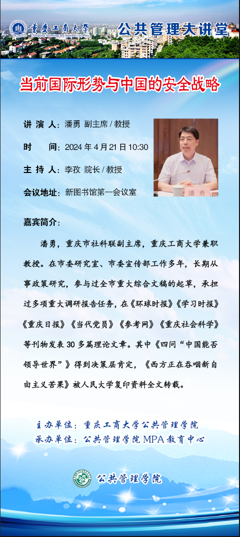 当前位置: 首页 >> 科学研究 >> 学术讲座 >> 正文 公共管理大讲堂——当前国际形势与中国的安全战略 时间:2024年04月15日 19:42 作者: 上一条:我院城乡规划系教师受邀参加2024第二届山地人居环境学术研讨会并作主题报告 下一条:公共管理大讲堂——新城市 新建设 新生活:未来城市发展中的建设与服务 【关闭】