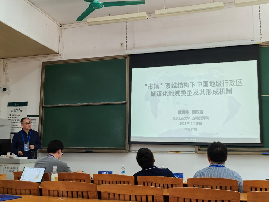 当前位置: 首页 >> 学术动态 >> 正文 我院城乡规划系教师武荣伟参加2025年中国人口地理学术年会并做分论坛报告 时间:2025年10月31日 12:33 作者: 武荣伟 2025年10月25日,2025年中国人口地理学术年会在中山大学成功举办。会议由中国地理学会人口地理专业委员会主办,中山大学地理科学与规划学院承办,以“以人口高质量发展支撑中国式现代化”为主题。本次会议汇聚了来自全国高校、科研机构、政府部门、规划企业的300余位专家学者与会。论坛共设有“乡村振兴、新型城镇化与城乡融合发展,新时代中国人口迁移流动的时空特征与演变趋势,人才流动集聚与区域高质量发展,城市社会空间分异与城市社会融合治理”等12个分论坛。 我院城乡规划系青年教师武荣伟应邀在“乡村振兴、新型城镇化与城乡融合发展”分论坛上作交流发言。他以《“市镇”双维结构下中国地级行政区城镇化地域类型及其形成机制》为题,分享了其最新研究成果。他指出,中国城镇化发展已步入中后期阶段,人口迁移流动的特征发生了重要转变,城—城间人口流动增多,镇域单元在人口流动中的枢纽作用持续增强,深入城镇化内部,从市—镇双维结构,揭示城镇化的地域类型与形成机制,对于因地制宜推动新型城镇化建设具有重要意义。汇报结束后,教师武荣伟与评议专家进行了深入交流,并就城镇化与城市化的异同点进行了讨论。 学院历来高度重视青年教师的成长与发展,把青年教师队伍建设作为推动学院事业持续进步的重要战略。学院积极鼓励青年教师“走出去”,在更高层次的学术平台上开阔视野、交流思想、展示才华。通过参加国内外重要学术会议,青年教师得以在交流中提升学术能力,在碰撞中激发创新思维。未来,学院将进一步通过制度保障与资源支持,为青年教师提供了广阔的发展空间和良好的学术氛围,使他们能够在科研探索与学术表达中不断成长、积累成果。 下一条:我校医保治理能力现代化研究院与重庆、遵义两地医疗保障研究会开展合作交流座谈 【关闭】