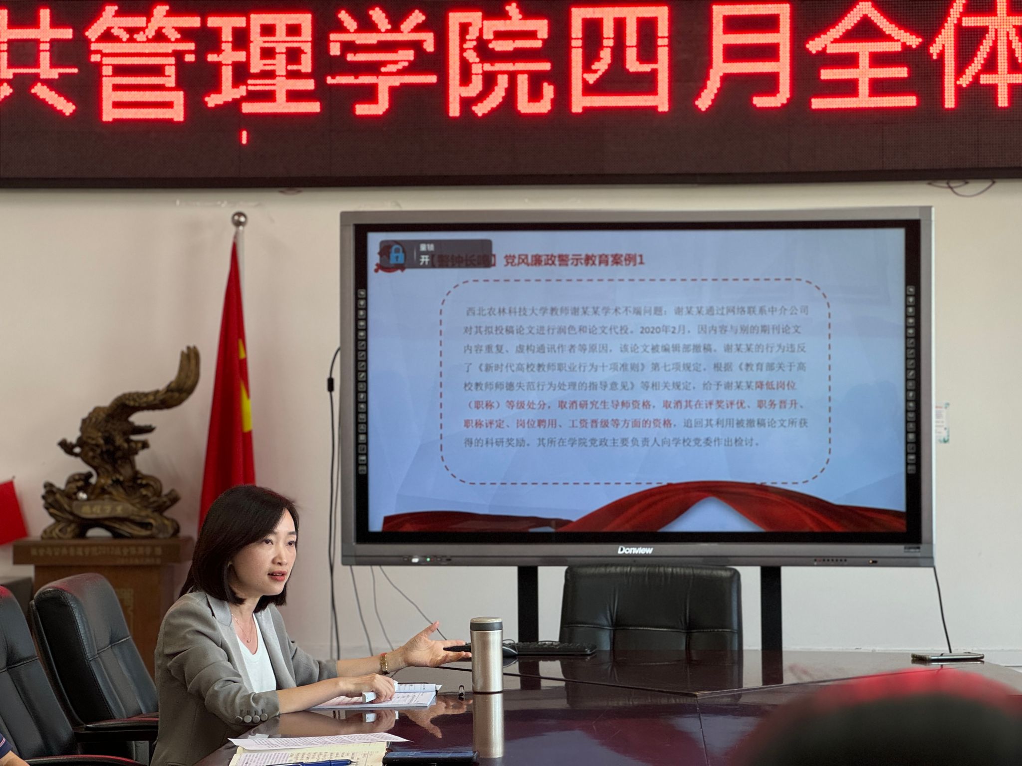 当前位置: 首页 >> 清廉公管 >> 清廉建设 >> 正文 必赢242网址开展纪律警示教育专题会 时间:2024年04月26日 16:08 作者: 郭爽 为持续推进清廉学院建设,强化警示教育,营造倡廉崇廉尚廉浓厚氛围,2024年4月26日下午,必赢242网址开展纪律警示教育专题会。学院全体教师参加会议,会议由党委副书记、纪委书记谢书楠主持。 会上,谢书楠领学了习近平总书记在二十届中央纪委三次全会上的重要讲话精神。她强调,要以清廉学校建设为契机,根据《必赢242网址清廉建设实施方案》,深入开展党性党风党纪教育,传承党的光荣传统和优良作风,把以权谋私、贪污腐败看成是极大的耻辱;要注重家庭家教家风,督促领导干部从严管好亲属子女;积极宣传廉洁理念、廉洁典型,营造崇廉拒腐的良好风尚。随后,围绕西北农林科技大学教师谢某某学术不端问题、九江学院教师朱某某在网上发表不当言论问题等2起党风廉政警示教育案例进行了通报,提醒广大教师应要知准则、守底线。 最后,党委书记彭勇指出,作为一名高校教师,应坚定理想信念、陶冶道德情操、涵养扎实学识、勤修仁爱之心、坚守三尺讲台、潜心教书育人,做党和人民满意的“四有”好老师。 上一条:必赢242网址开展廉洁思政“四课”活动 下一条:必赢242网址开展2024年党风廉政建设集体约谈会 【关闭】